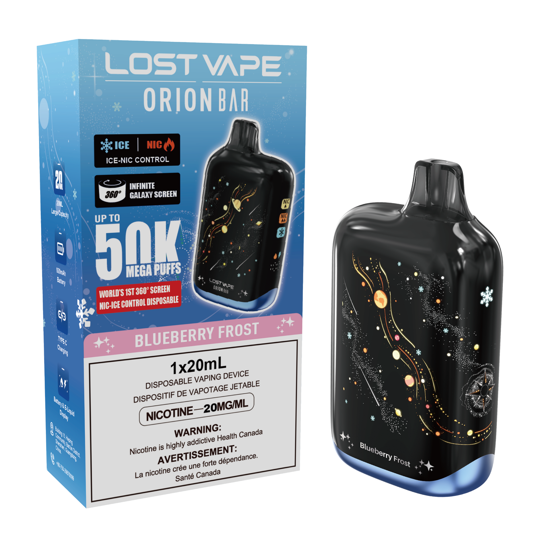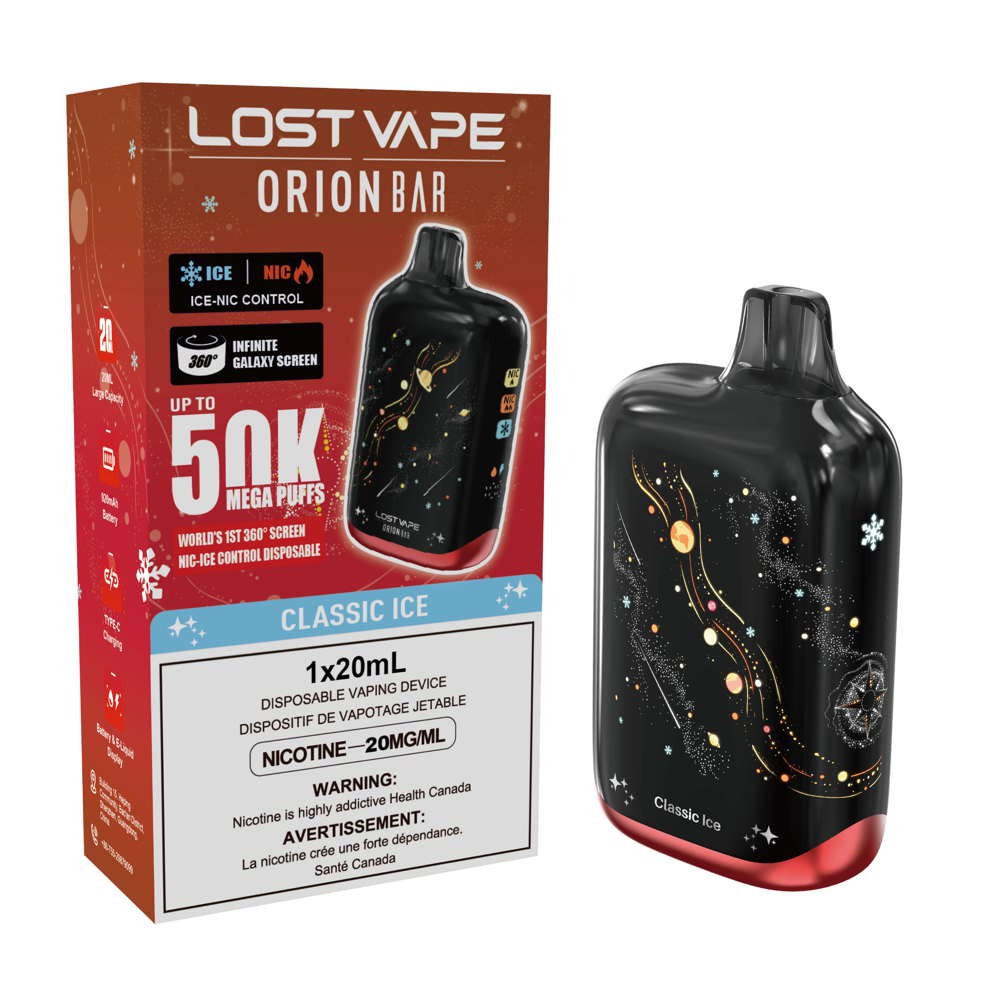 visual experience and real-time Battery & E-liquid Display. Enjoy uninterrupted sessions with up to 50K puffs, a 20ml e-liquid capacity, and a 920mAh battery. Customize your vape with 4 dynamic combos using ICE and NIC Control. Plus,