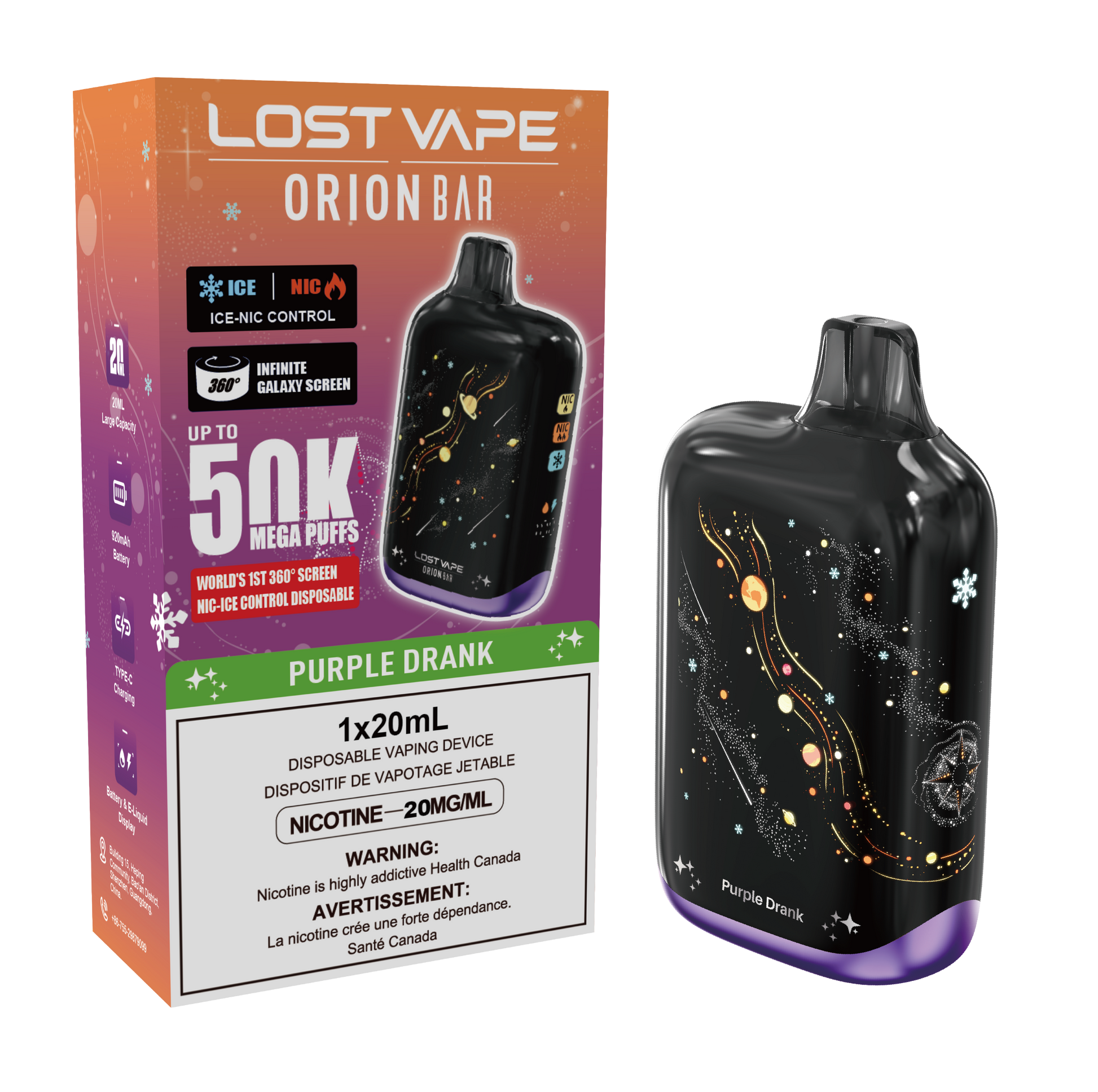 Embark on an amazing, infinite journey through the galaxy with the Lost Vape OrionBar 50K, featuring a 360° immersive